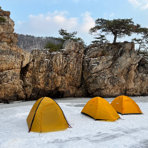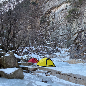 대부분 강이 얼어 있는 곳에서 빙박을 하다 보니 거친 바람이 동반됩니다. 쉘터로 바람을 막으셔야 체온유지에 좋습니다.