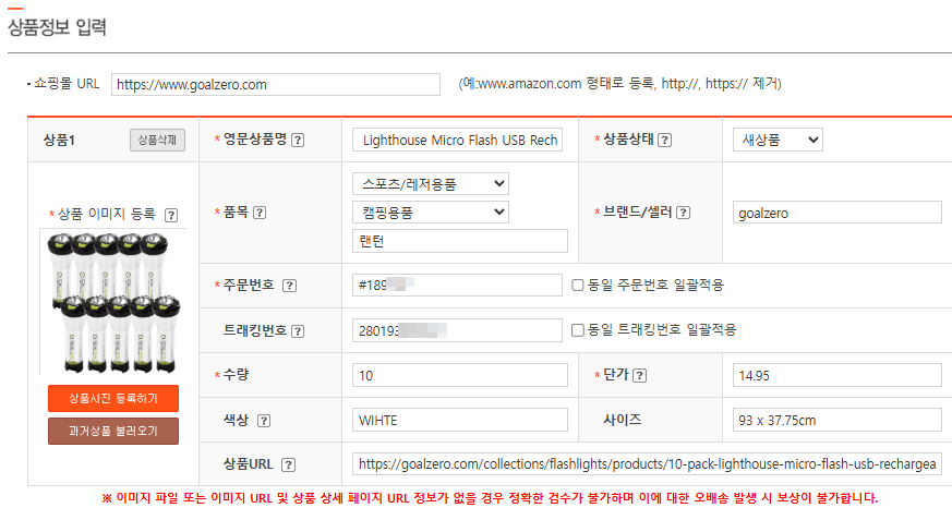 5) 상품정보 입력하기