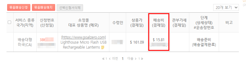 개인통관고유부호까지 입력을 마치고 아이포터에서 상품이 도착하면 배대지 요금을 결제하라는 알림이 올 겁니다. 배대지 요금까지 결제하면 한국으로 골제로가 발송됩니다.