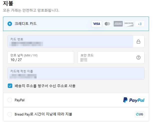 VISA카드로 결제했습니다. 마스터카드, PAYPAL 등 결제 방식은 다양합니다. 결제로 완료되면 영수증이 메일로 발송됩니다. 하루가 지나면 물건이 아이포터로 발송되며 트래킹 번호가 생성됩니다. 트래킹 번호가 생성되면 아이포터에서 상품정보 입력을 합니다.