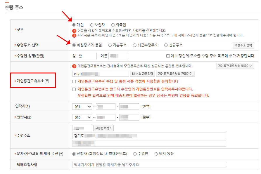 6) 개인통관고유부호 발급받기