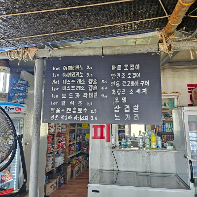 굴업도 매점에는 커피, 음료, 술, 담배 등 판매합니다. 무료로 휴대폰 배터리까지 충전할 수 있어 도착하시면 바로 충전하시면 됩니다. 매점 앞에는 파라솔이 설치되어 있어 잠시 커피를 마시며 해변가에 여유로움을 즐기는 맛도 있습니다.