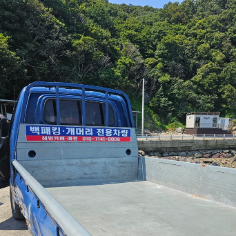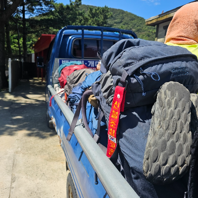 굴업도에 도착하면 트럭이 기다리고 있습니다. 굴업도는 대중교통이 없기 때문에 마을 주민분들께서 트럭으로 관광지까지 이동시켜 주십니다. 백패킹으로 굴업도를 오셨다면 해변카페 매점 트럭을 타시면 됩니다.