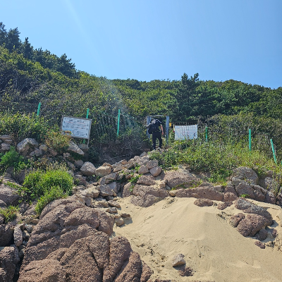 배를 타고 오느라 지친 몸을 잠시 휴식 취하고 해변가 끝에 있는 철망을 통과하시면 개머리 능선이 나오기 시작합니다.