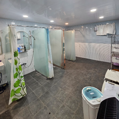 화장실은 칸마다 비데가 설치되어 있습니다. 샤워장은 클렌징폼, 바디, 샴푸, 헤어드라이기까지 구비되어 있어 수건과 옷만 준비하시면 됩니다.