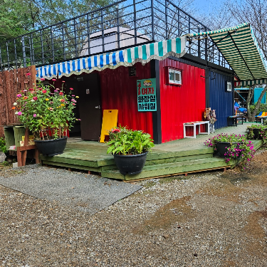 흡연실은 입구에 빨간 컨테이너로 되어 있습니다. 캠핑장 내에서는 전체 금연구역입니다.