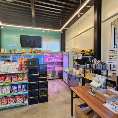 단독적으로 이용이 가능한 BBQ존은 무인으로 운영되는 매점에서 고기와 과자 등을 구매하실 수 있습니다. 고기를 구매하시면 그리들도 대여가능 합니다. 2타임 연속 이용이 불가능하고 생일케이크와 이유식 외에 외부음식(주류포함) 반입금지입니다.