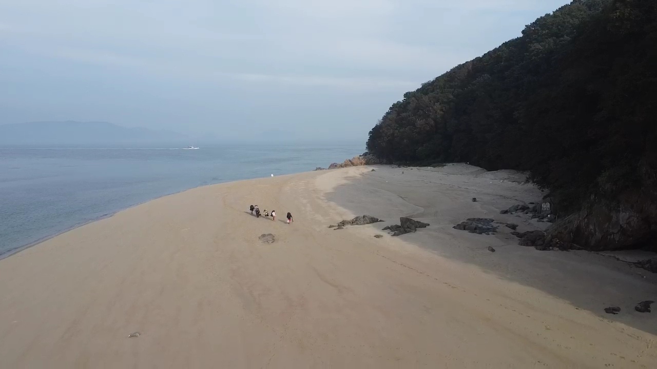 깨끗하고 고운 모래로 펼쳐진 백사장을 맨발로 걸어보시면 기분이 좋아지실 겁니다. 넷플릭스 솔로 지옥 촬영 장소에 텐트 피칭을 했습니다. 간조가 되니 바다 가운데 모래섬이 등장합니다. 사승봉도는 모래의 섬 사도라고도 불립니다.