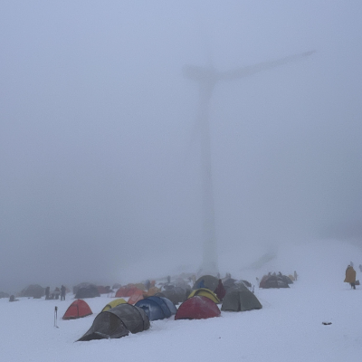 선자령 정상석에 가는 길 발전기 옆에는 평지가 있습니다. 오후에 올라가시면 백패커들은 이곳에 텐트와 쉘터를 설치합니다. 밤에는 백패커들의 잠자리가 되고 낮에는 등산객의 쉼터로 변합니다. 백패커들은 아침 8시면 철수를 하고 등산객은 산행을 시작하기에 서로 공존할 수 있습니다.