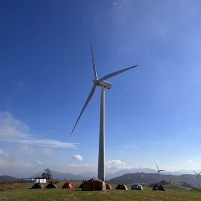 노란색 풍력발전기 주변으로 텐트를 많이 치시는데 발전기가 회전하면서 나는 소음 엄청난 바람소리가 합쳐지면 밤잠을 설칠 수 있습니다.