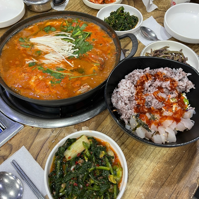 회덮밥은 큐브참치가 아닌 광어나 우럭을 넣어주셔서 쫄깃하고 맛있습니다. 꽃게탕은 큰 암꽃게 위주로 넣어 주셔서 맛있게 먹었습니다. 밑반찬은 맛있고 나물 반찬도 굉장히 맛있습니다. 승봉도 독점 식당이지만 재료와 가격이 적절하고 맛도 훌륭한 집입니다.