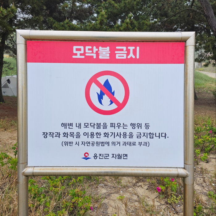 - 첫 번째는 모닥불 금지입니다. 장작불을 사용하시면 안 되기 때문에 불멍을 하시면 안 됩니다.