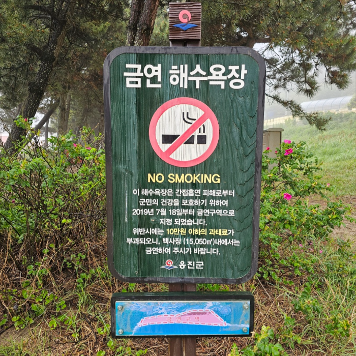 - 두 번째는 금연 해수욕장입니다. 이일레 해수욕장 내에서 흡연을 하시면 100,000원의 과태료가 부과됩니다.