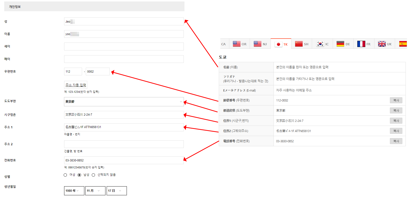 - 1) 아이포터 가입 후 일본 물류센터 주소 발급