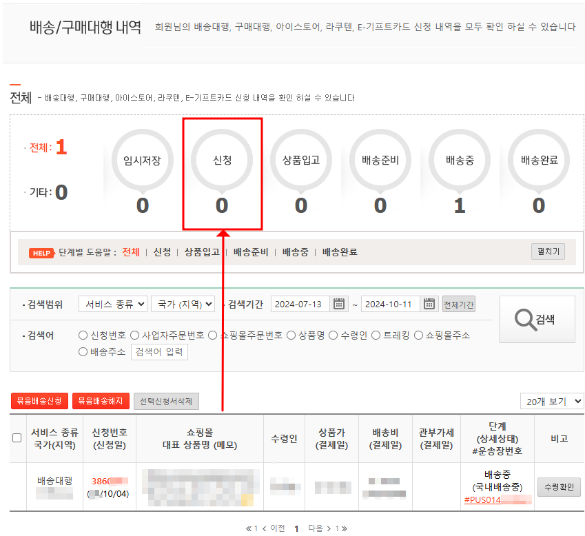 - 4) 한국으로 배송 신청 및 배송비 결제