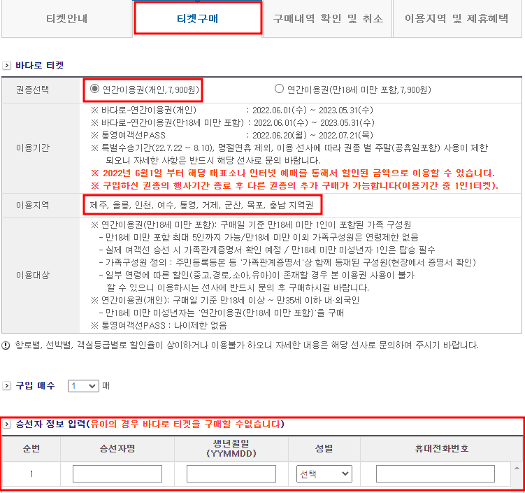 섬 여행하시는 분들이 많아지고 있습니다. 한번 구매하시면 1년 동안 할인을 받을 수 있는 바다로 티켓을