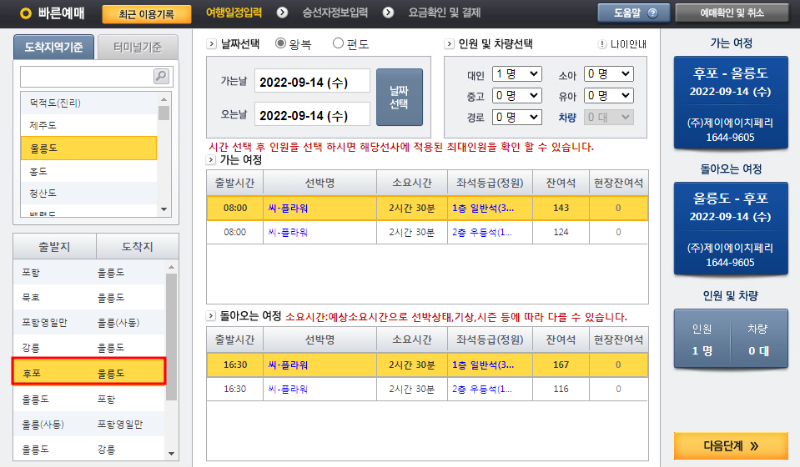 2. 배편 예약하기