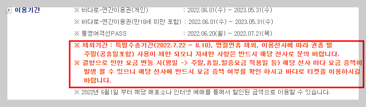 ▲제외기간을 확인하셔야 합니다. 제외기간은 할인 불가합니다.