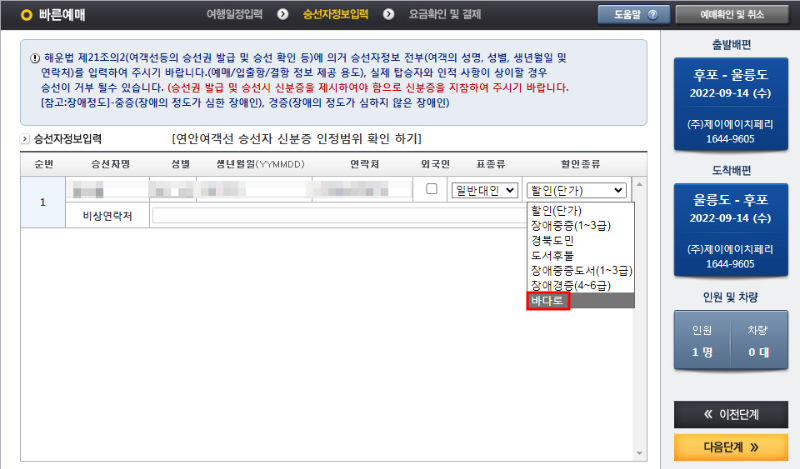 1) 바다로 티켓 구매하기