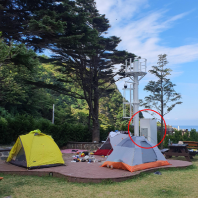 울릉도 학포야영장은 바람이 많은 부는 장소입니다. 쉘터나 타프를 설치하시고 스트링으로 단단히 고정시키지 않는 다면 바람에 날아가버리는 상황이 벌어질 수 있기 때문입니다.
