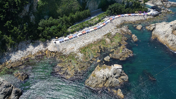 장호항을 처음 오신 분들은 매표소 앞에서 스노클링을 즐기십니다. 하지만 조금 더 안쪽으로 들어가신다면 그늘막과 평상이 일렬로 준비되어 있습니다. 이곳에는 음식을 포장하셔서 휴식과 스노클링 함께 즐기실 수 있습니다.