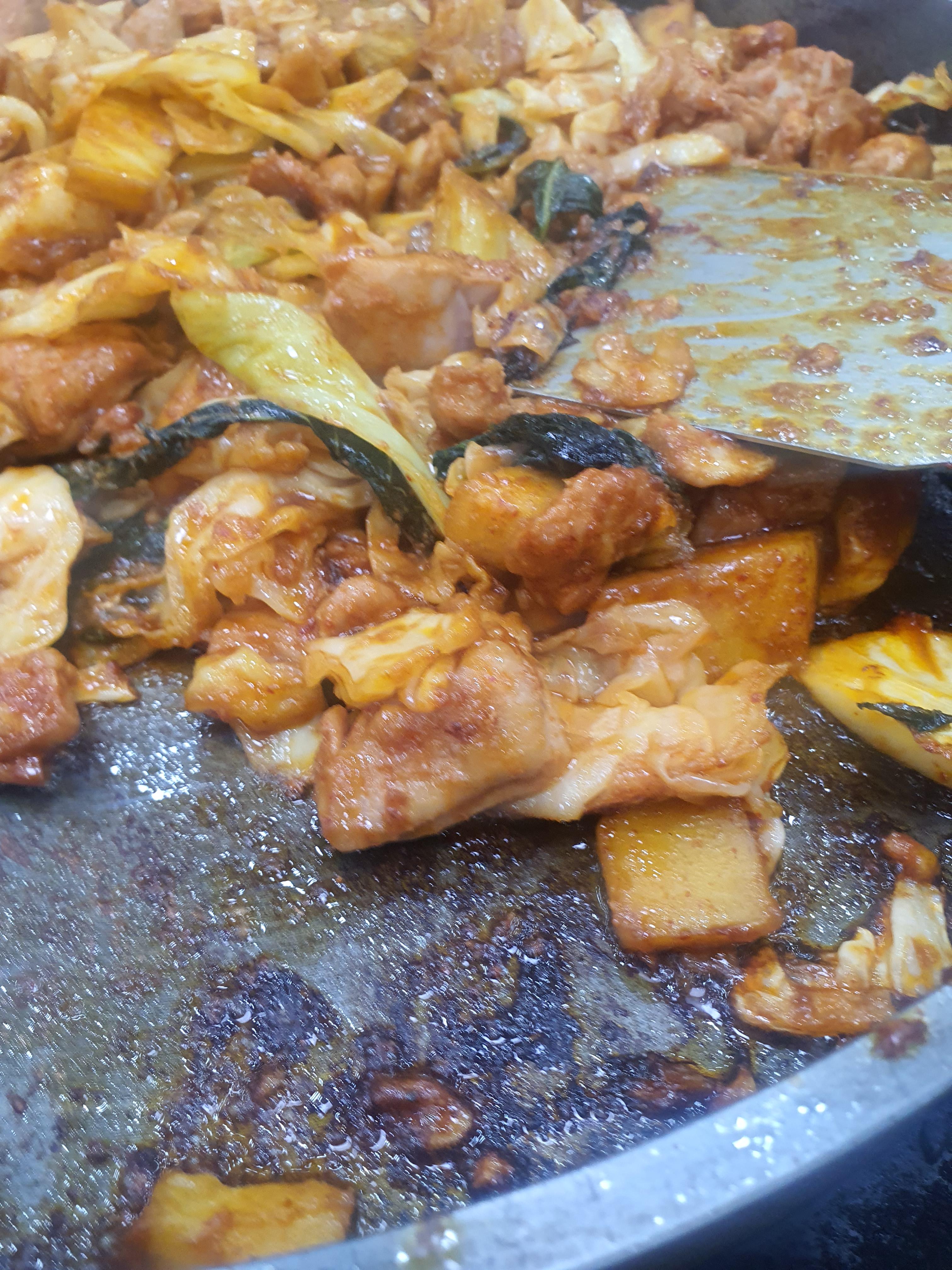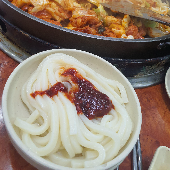 닭갈비는 역시 우동사리를 빼놓을 수 없기 때문에 사리추가 했습니다. 닭갈비가 거의 다 익어가는 시점에 우동사리는 넣어서 그런지 양념과 따로 노는 맛입니다. 우동사리는 추천하지 않습니다.