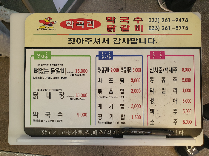 춘천 닭갈비 맛집을 찾다가 우연히 방문하게 되었던 학곡리 막국수 닭갈비 맛집 리뷰입니다. 닭갈비 맛집 기준은 닭고기를 씹었을 때 녹진한 양념이 입안에서 터졌을 때 여기 닭갈비 맛있네 생각이 듭니다. 오랜만에 그런 감동을 주었던 집이라 리뷰하게 되었습니다.