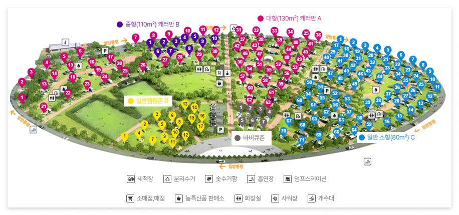 캠핑존은 4가지로 구성되어 있으며 캠핑 스타일에 맞게 선택하시면 됩니다.