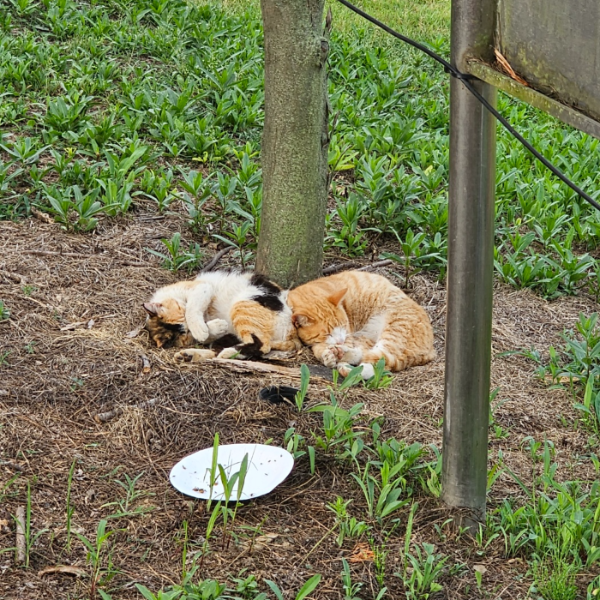 삼원레저타운은 애견 동반 캠핑장으로 강아지들이 있습니다. 하지만 고양이들도 주변에 있으니 민감하다면 동행하지 않는 게 좋습니다.