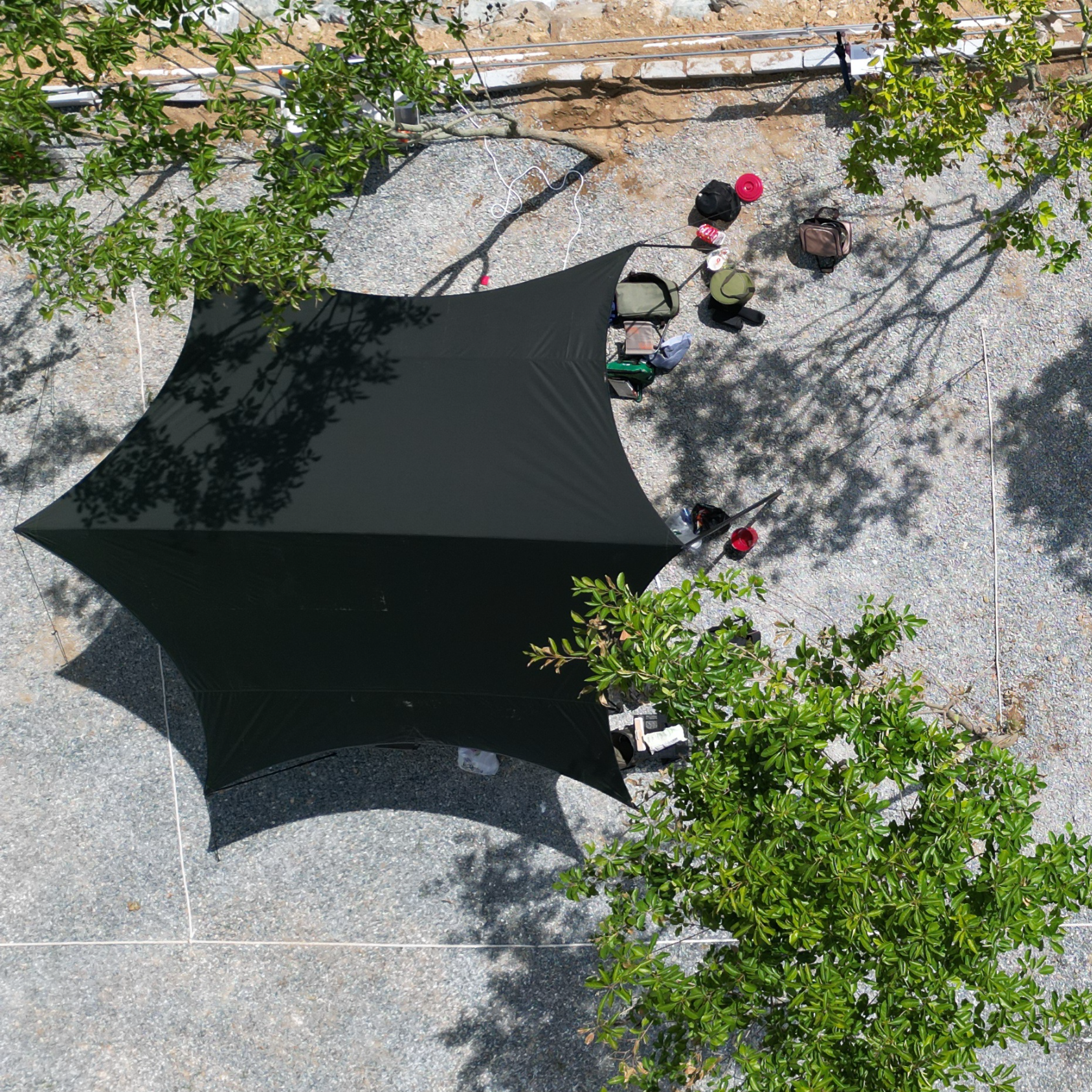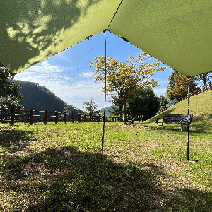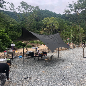 비가 내리거나 바람이 분다면 40cm 이상의 팩을 설치하는 것이 좋습니다. 주변에 나무나 기둥을 활용해 타프를 설치하면 더욱 편리합니다.