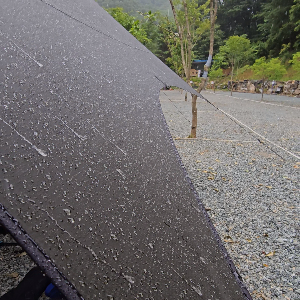 발수 : 물이 원단에서 튕겨져 나가게 하는 가공법입니다. 수분이 원단 표면에 머물지 않고 흘러가게 됩니다.