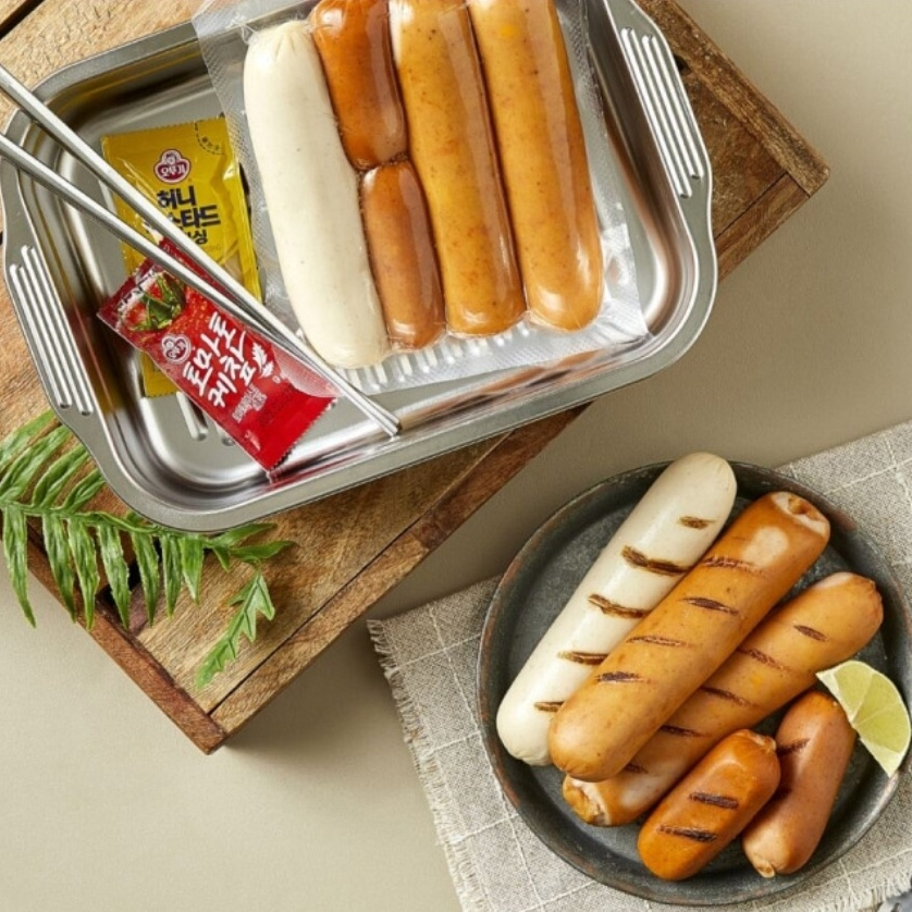 조리방법 : 소시지 비닐 끝을 살짝 뜯은 후 전자레인지(60초) 조리해주세요. 트레이와 젓가락은 전자레인지 사용을 금지해주세요