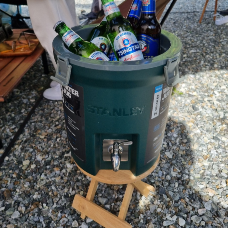 ▲스탠리 워터 저그에 얼음을 부어 맥주 온도를 낮춰본다 맥주는 역시 병맥주.