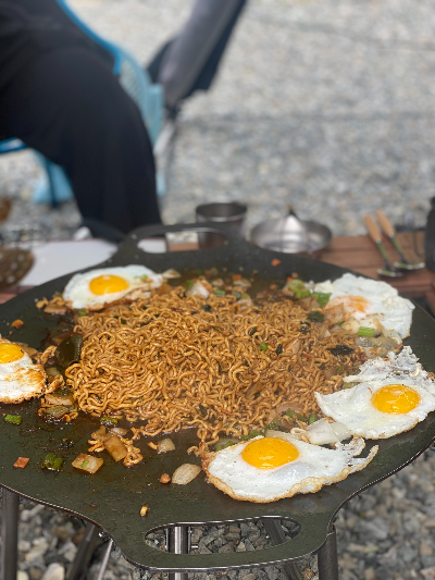 ▲아침은 간단하게 우니 비빔밥과 그리들 짜파게티. 그렇다면 이제 남은 건? 캠핑의 꽃은 설거지.