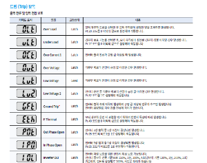 • EEP Err : 키패드, 인버터 내부의 기억 장치 소손 등으로 파라미터 읽기/쓰기에 문제가 발생한 경우