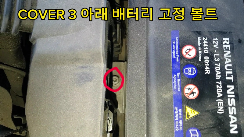 자동차 배터리 교체 시 우선 음극단자(-)부터 케이블을 제거하고 양극단자(+) 케이블을 제거합니다. 배터리를 잡고 있는 브래킷 볼트를 풀어 줍니다.