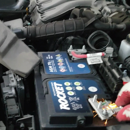 케이블 단자 연결 시 아크가 발생하는데 자연스러운 현상이니 당황하지 않으셔도 됩니다. 시동을 먼저 걸어 보시고 잘 동작한다면 차량 배터리 교체는 성공입니다.