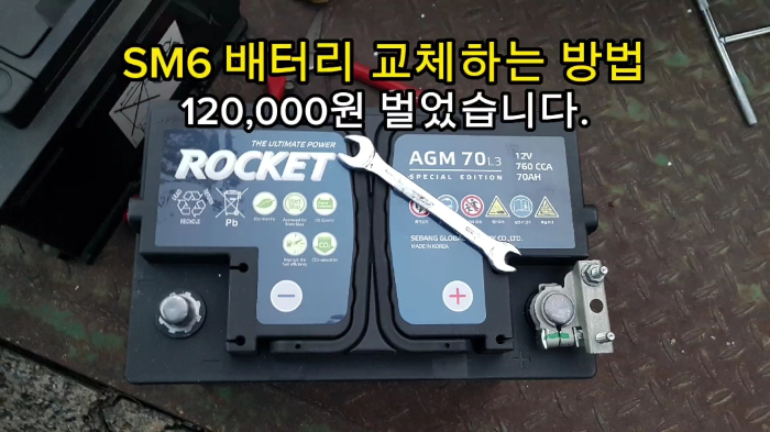 SM6 자동차 배터리를 셀프 수리 교체 해봤습니다. 주말 간 배터리 방전으로 보험사 긴급출동 3회를 사용하고 더 이상은 안될 것 같아 배터리 교체를 하게 되었습니다. 보험사 배터리 교체비용 220,000원 르노삼성서비스센터에서 240,000원 비용 발생한다길래 인터넷에서 120,000원에 배터리를 구입했습니다.